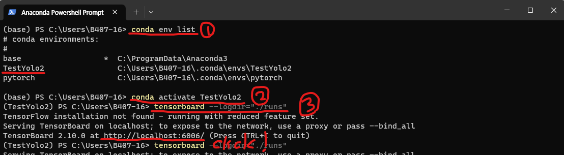 3. 위의 로그파일이 생성되었다면 아나콘다 cmd창을 켜준후 명령어를 입력한다.