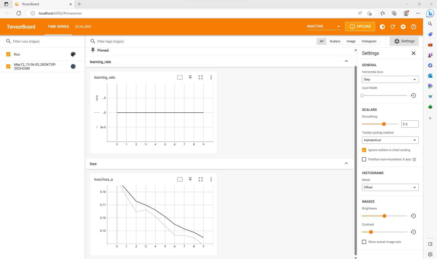 4. 텐서보드에 그래프가 성공적으로 그려진 모습.