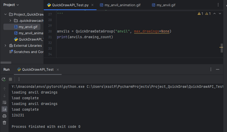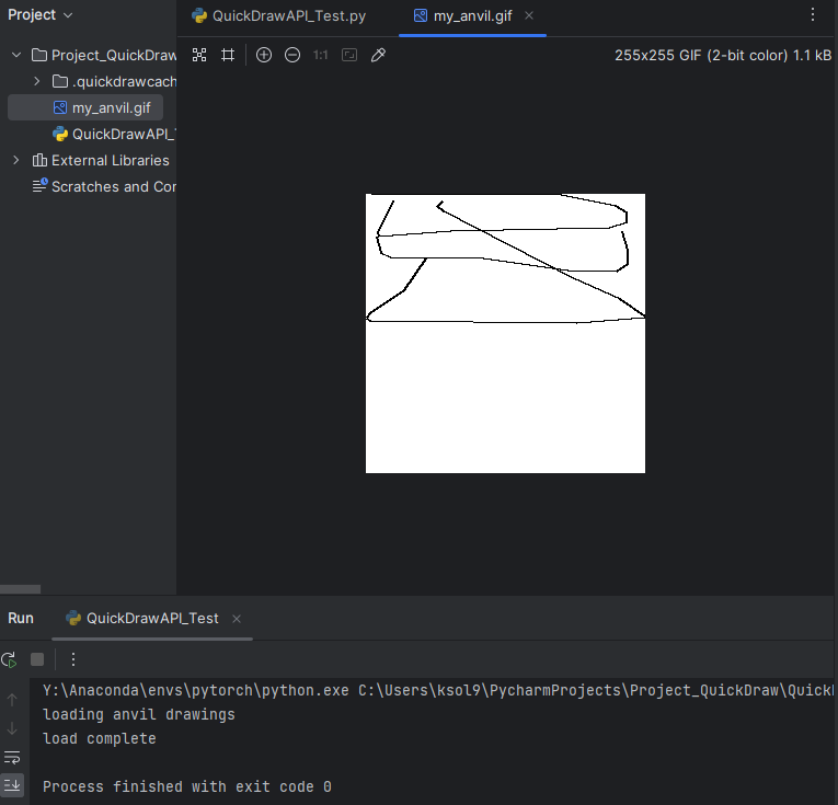 quickdraw는 anvil.bin 데이터 파일을 다운로드하고 anvil의 랜덤 Drawing을 위한 데이터를 반환합니다.