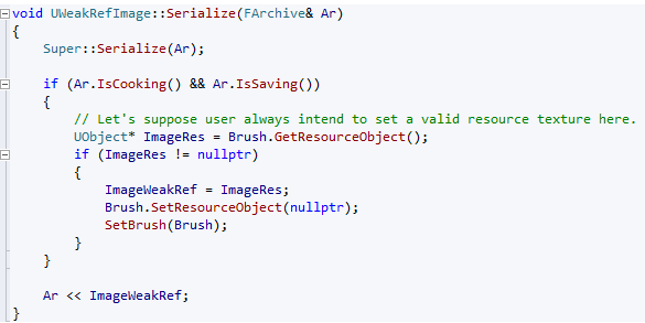 에디터에서 이미지 속성이 설정되어 있고 텍스처를 삭제하려는 경우, Cook Stage에서 UImage와 UTexture 사이의 참조 관계를 제거하여 이 UserWidget의 CDO가 UTexture를 참조하지 않도록 해야 합니다.
