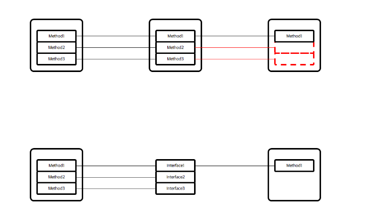 객체는 자신이 호출하지 않는 메소드에 의존하지 않아야 한다는 원칙입니다. 그림을 통해 알아보겠습니다.
